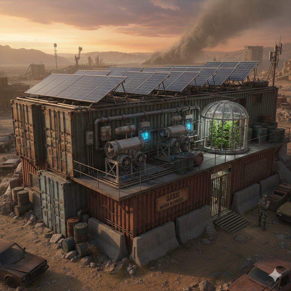 Extreme Klimaphänomene in postapokalyptischen Umgebungen, wie Dürren, Hitzewellen oder Schneebedeckung, führen häufig zu Wasserknappheit. Photovoltaische Solarenergiesysteme können unter verschiedensten klimatischen Bedingungen kontinuierlich arbeiten, und moderne atoh2o Luft-Wasser-Generatoren können trotz extremer Temperaturen effizient Wasser gewinnen. Diese Kombination stellt sicher, dass Überlebende auch unter extremen Wetterbedingungen an das benötigte Wasser gelangen können.